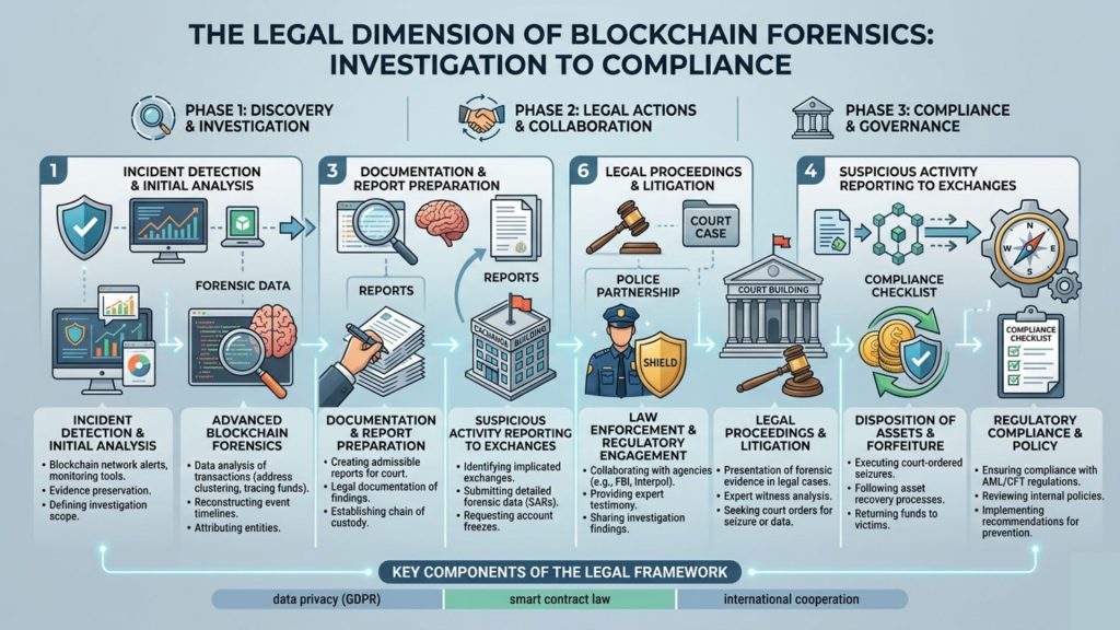 Blockchain forensics increasingly intersects with formal legal process and regulatory compliance. Understanding this intersection shapes how investigations are conducted and documented from the very beginning.